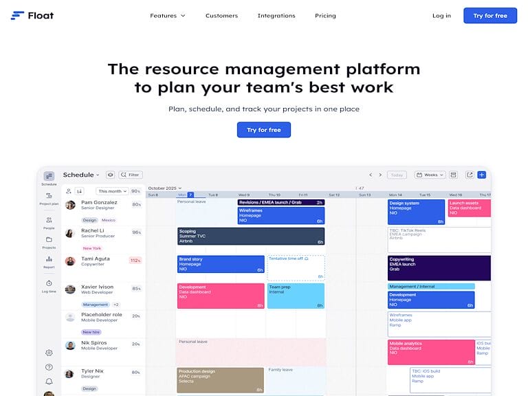 Float provides a resource management solution designed to streamline planning and scheduling across multiple projects. This software allows teams to allocate tasks based on skills and availability while tracking project budgets and timelines. With live updates and drag-and-drop scheduling, Float ensures that any changes are instantly visible to all team members. It aids in better decision-making regarding project capacity, hiring needs, and budget forecasting.