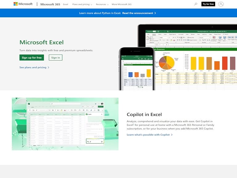 Microsoft Excel, part of the Microsoft 365 suite, supports project management by enabling users to transform data into actionable insights. With features like Copilot, it aids in project data analysis and decision-making. Excel also facilitates teamwork with real-time collaboration and visualization tools, making it a comprehensive choice for managing project timelines, budgets, and resources.