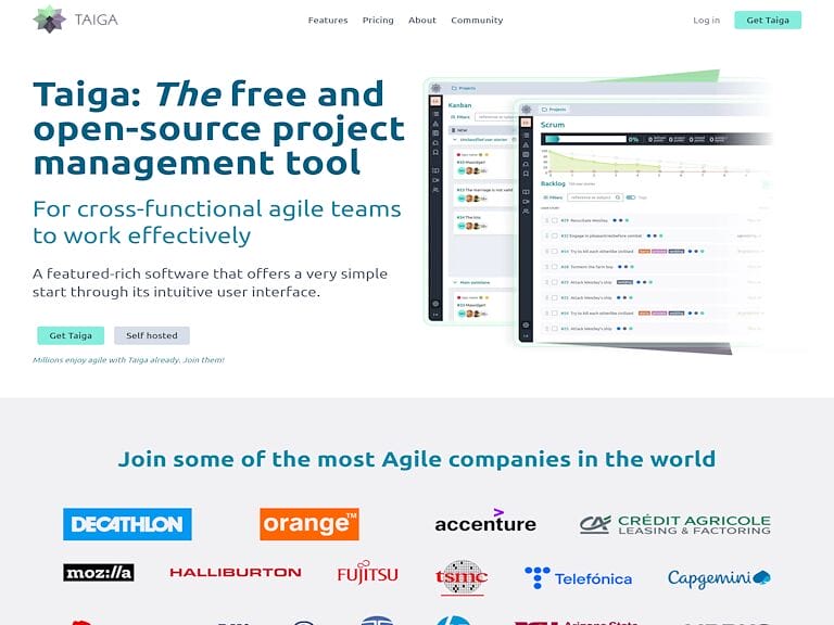 Taiga is an open-source project management platform designed to support agile teams in planning and tracking their projects. It offers intuitive interfaces for Kanban and Scrum workflows, complete with issue tracking and comprehensive reporting. Taiga enables teams to maintain effective communication, adapt workflows, and enjoy a high degree of customization for managing their projects. With self-hosted options, Taiga ensures security and control over project data, making it ideal for various team structures.