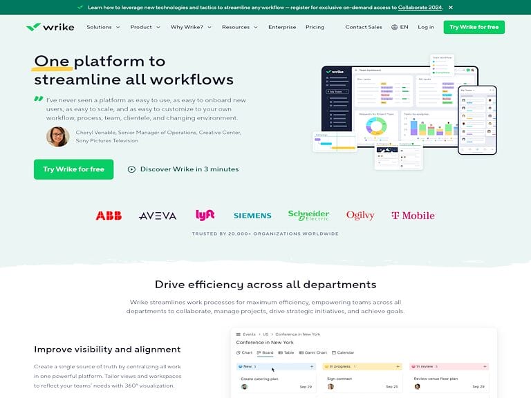 Wrike is a powerful tool for managing projects that makes it easy for teams to work together efficiently. It helps organize tasks and automates routine jobs, letting teams concentrate on what truly matters. With features like live dashboards and customizable views, Wrike improves how you see and plan your work. Plus, it connects seamlessly with many other apps, allowing you to adapt your workspace to fit your needs and grow your operations smoothly.